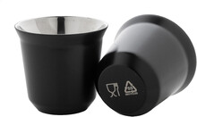 Sada 2 dvoustěnných termohrnků na espresso ve tvaru kávových kapslí z recyklované nerezové oceli, 80 ml. V krabičce z kraftového papíru.