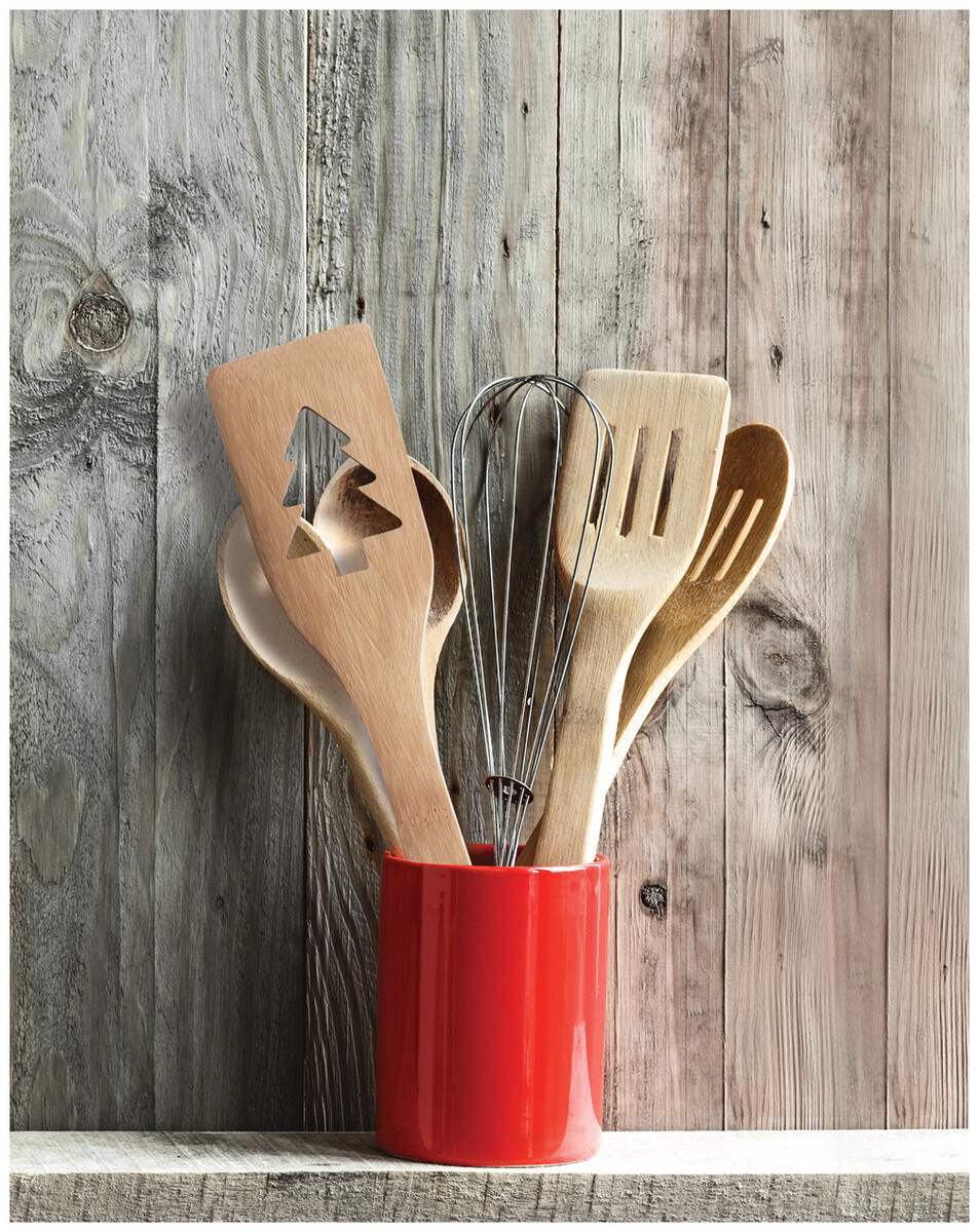 Vařečka z bambusu s vyřezaným vánočním stromečkem.