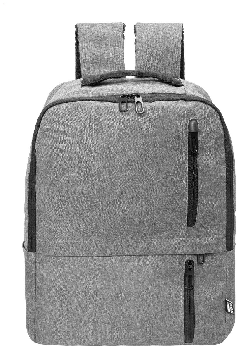 RPET batoh s hlavní přihrádkou na zip a 3 předními kapsami na zip. S polstrovanými přihrádkami na tablet (10") a notebook (15"), polstrovanými zády a ramenními popruhy. 600D RPET polyester s výrazným štítkem RPET.