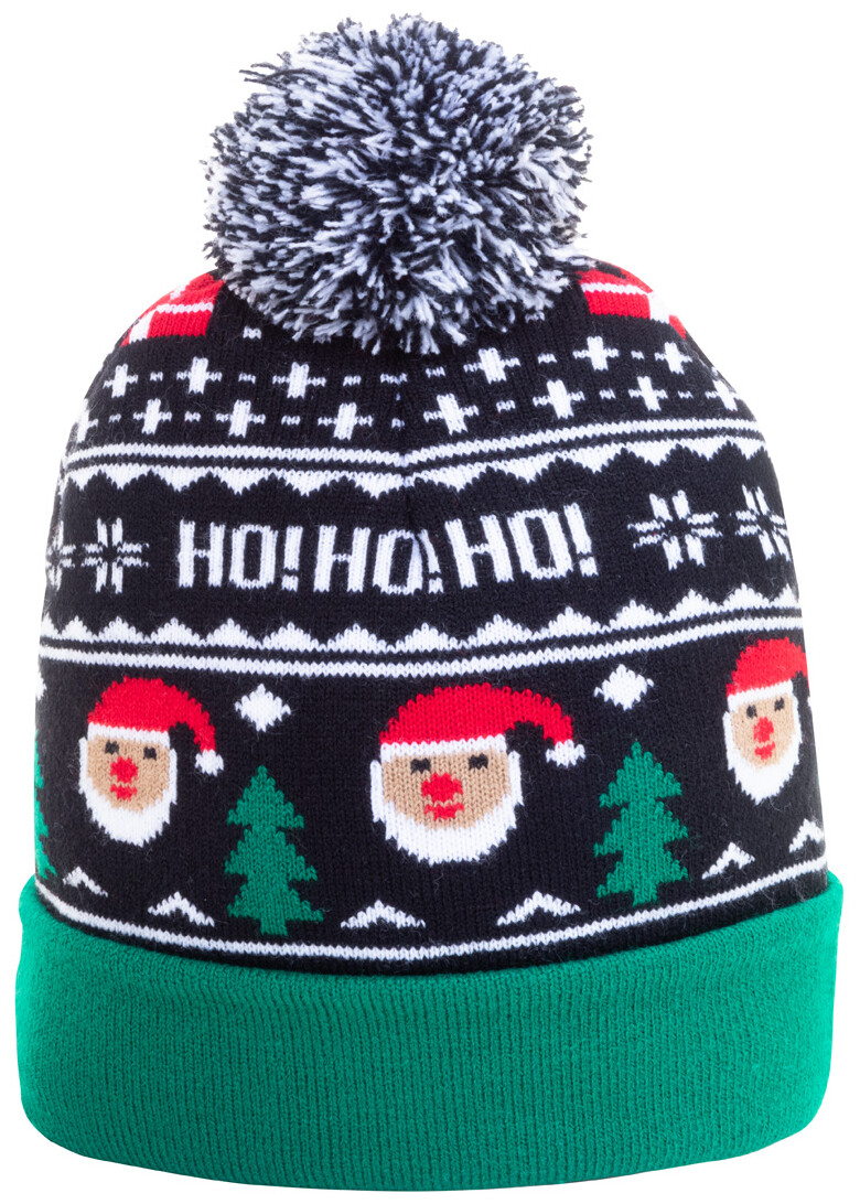 Pletená vánoční zimní čepice z akrylu s bambulí.