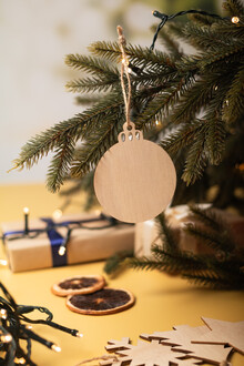 Dřevěná ozdoba na vánoční stromeček s konopnou šňůrkou.