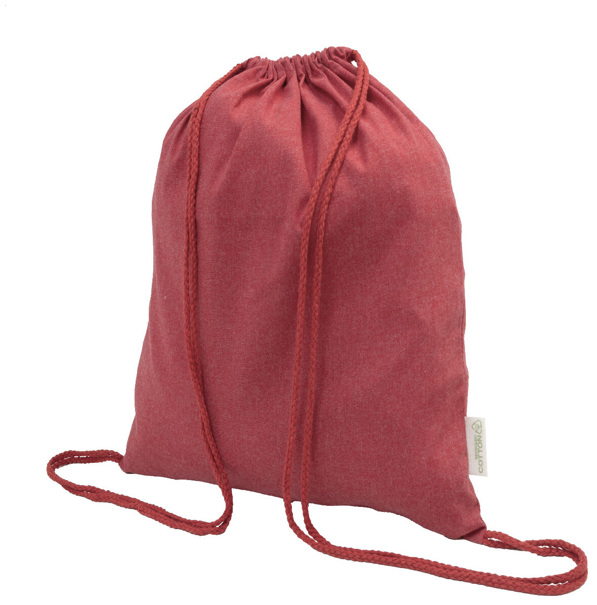 Vak se stahovací šňůrkou ze 70 % recyklované bavlny a 30 % polyesteru RPET, 140 g/m2. S výrazným štítkem z recyklované bavlny.