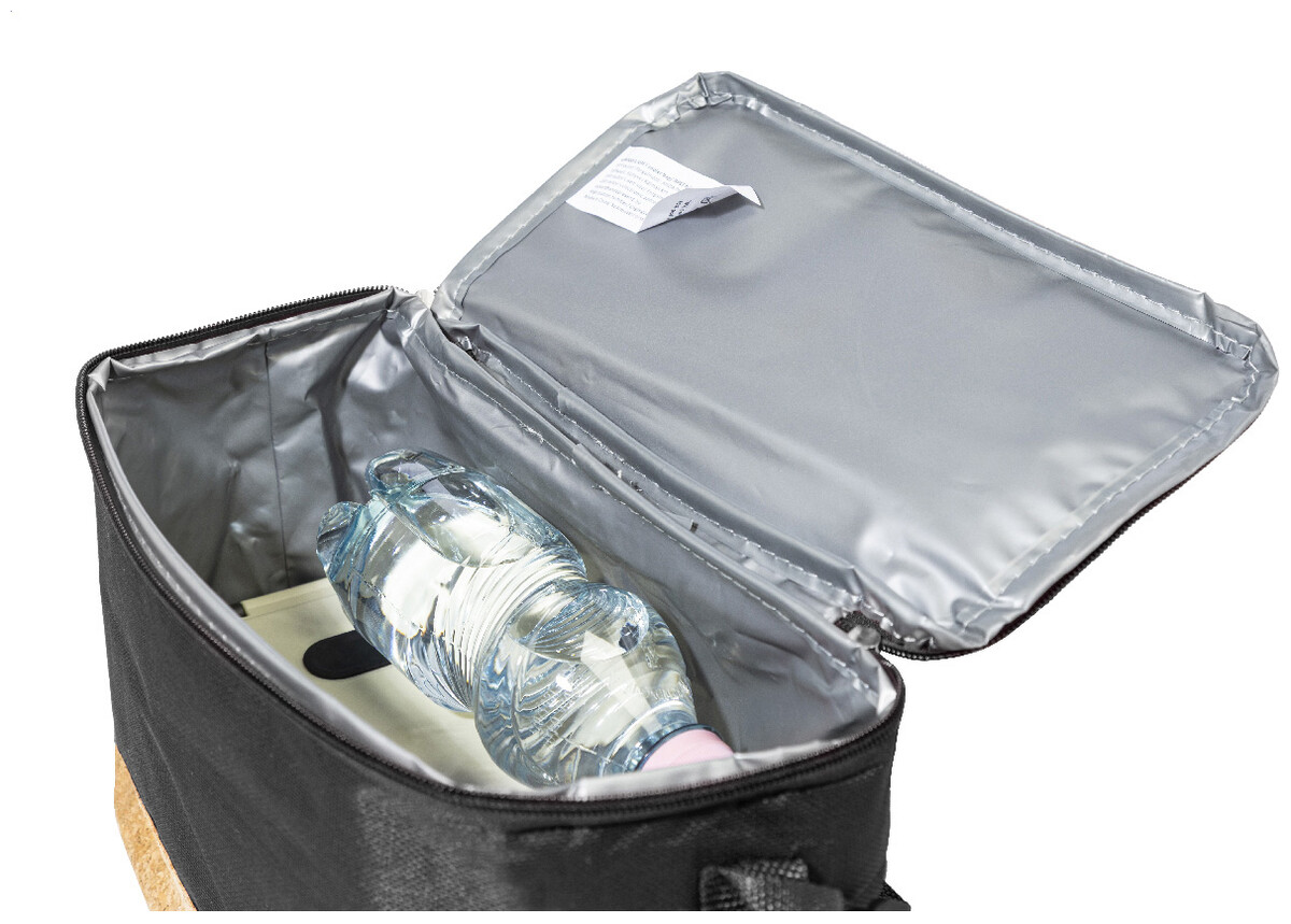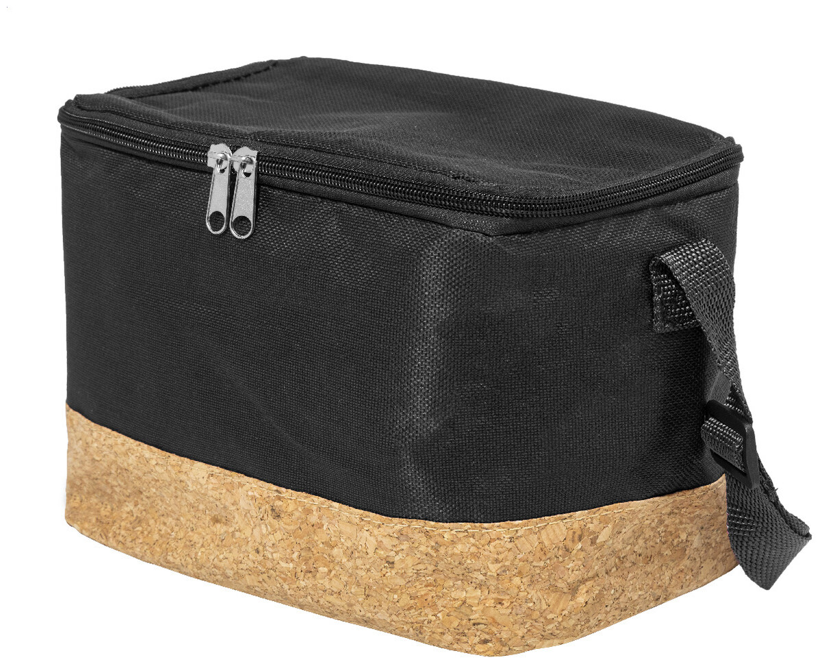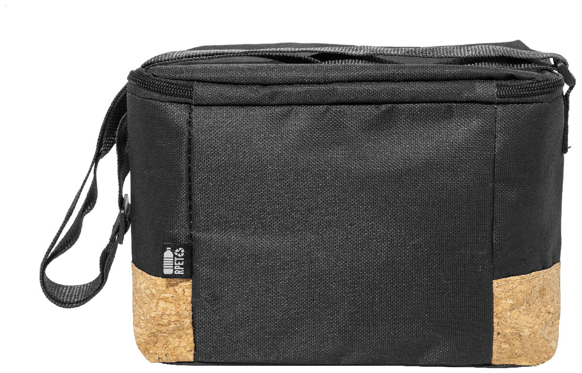 Chladicí taška na zip z 600D RPET polyesteru s přírodní korkovou základnou, PEVA polstrováním a nastavitelným ramenním popruhem. S výrazným štítkem RPET.