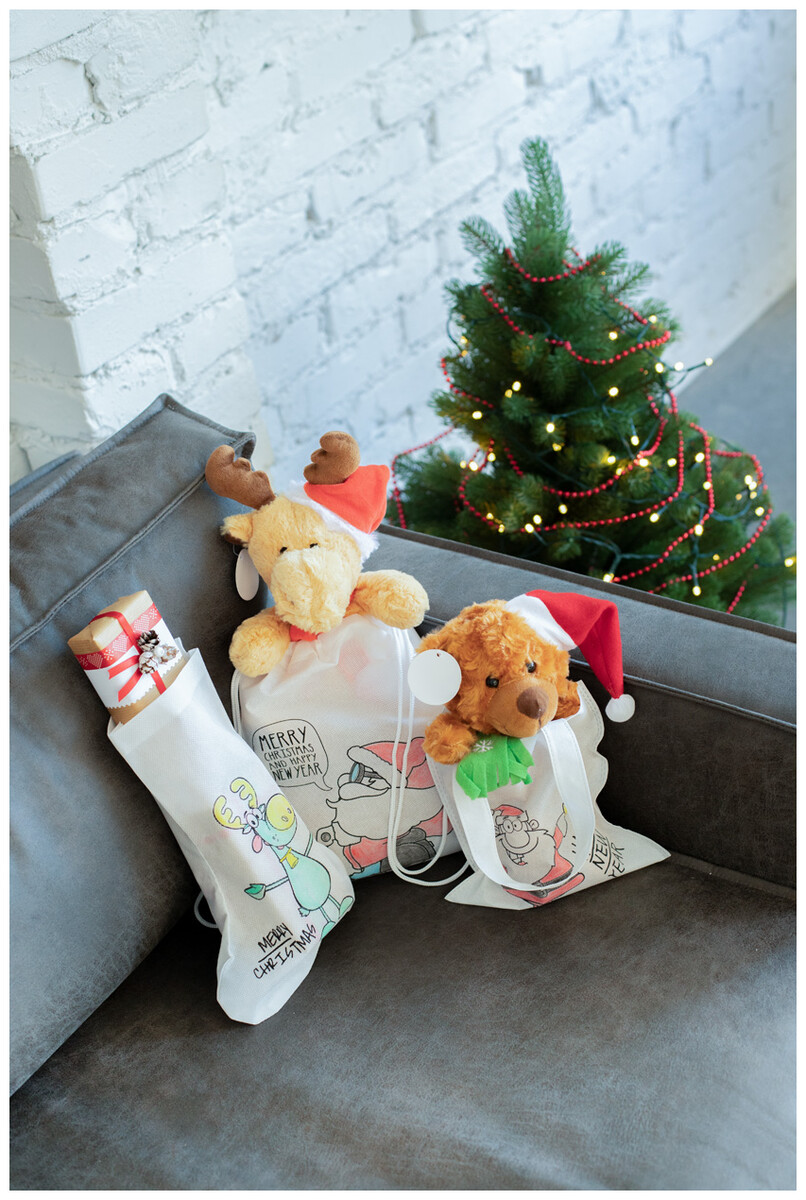 Vánoční punčocha na vybarvení z netkané textilie s 5 voskovkami, 80 g/m2.
