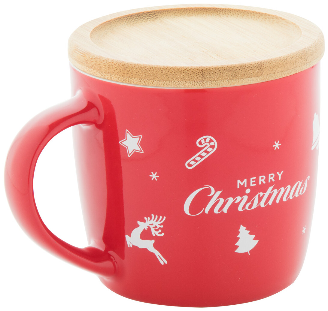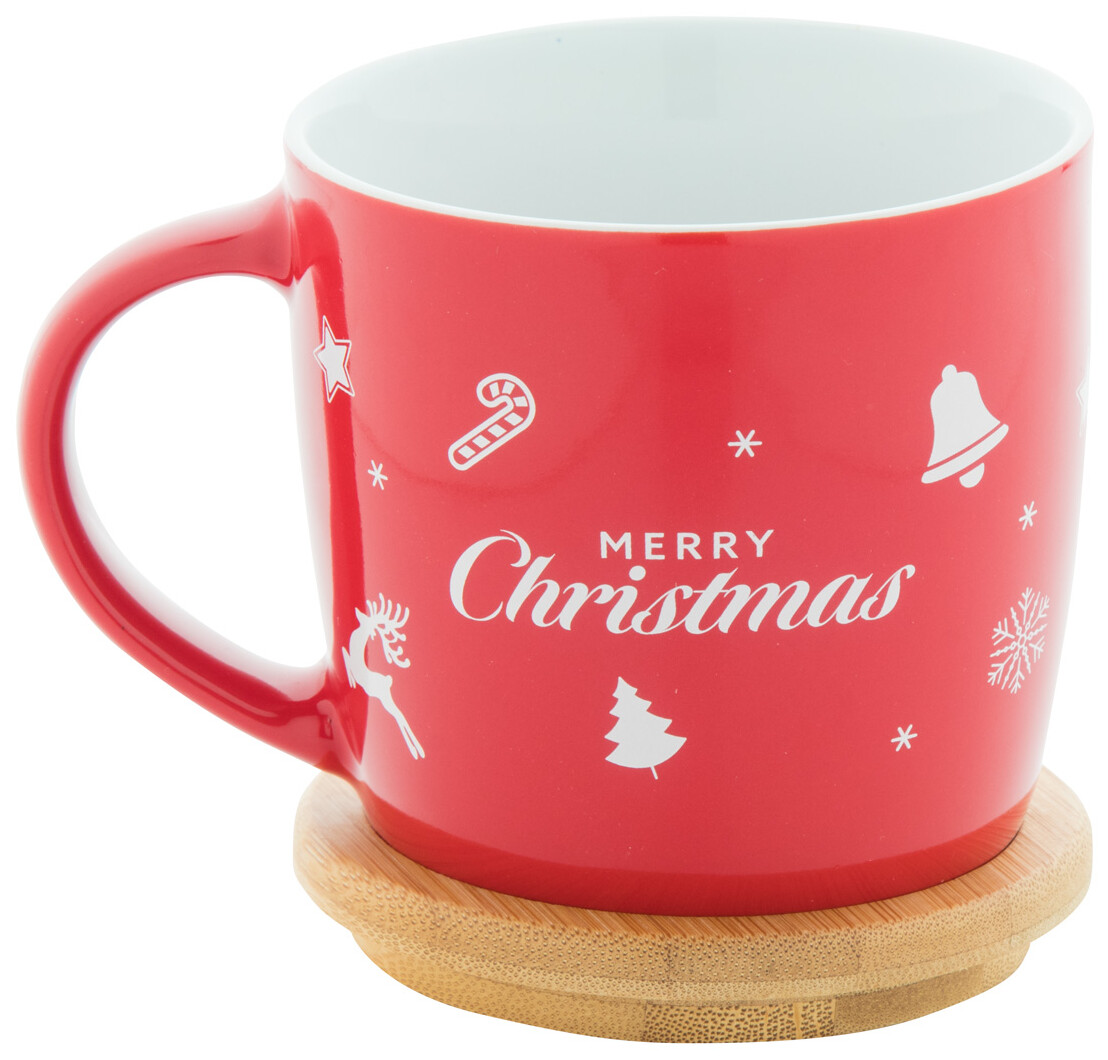 Vysoce kvalitní keramický hrnek s bambusovým táckem a vánočním designem, 370 ml. V kraftové papírové krabici.