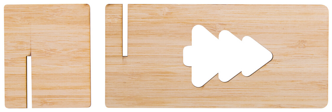Stojánek na mobil z bambusové překližky s vyřízlým vánočním motivem. Dodáváno rozložené.