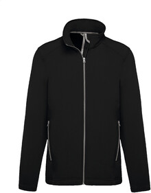 Dvouvrstvá softshellová bunda na zip s bočními kapsami na zip. S kontrastními zipy. Vodoodpudivá tkanina. Vnější strana: 95 % polyester a 5 % elastan. Vnitřní strana: 100% polyester micro polar fleece. Materiál: 300 g/m2. Výrobek značky Kariban.
