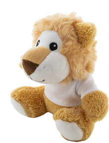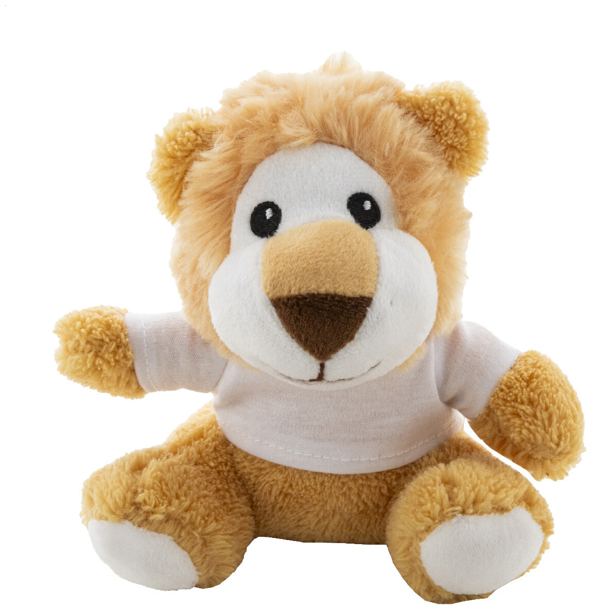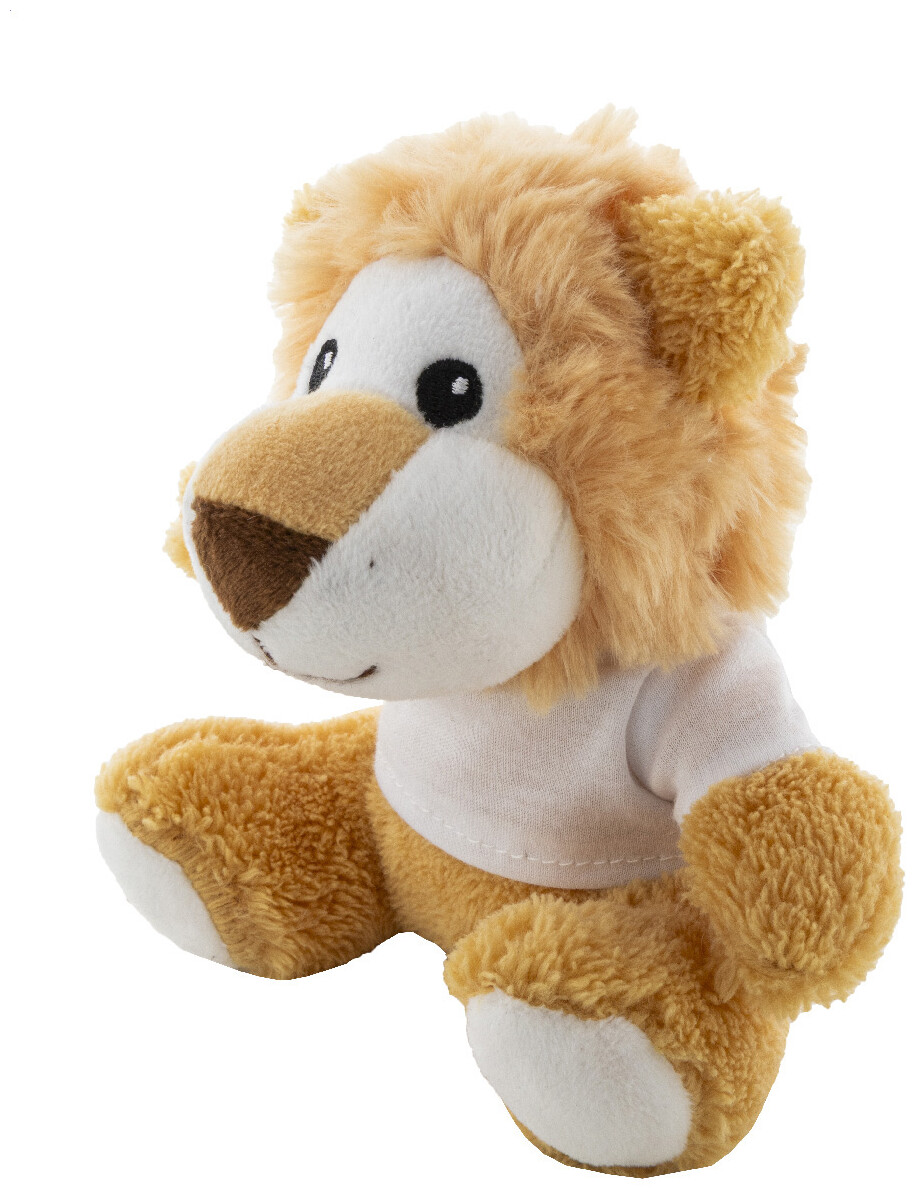 Plyšový lev z RPET s tričkem na potisk z RPET polyesteru.