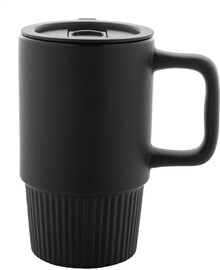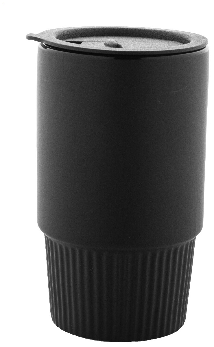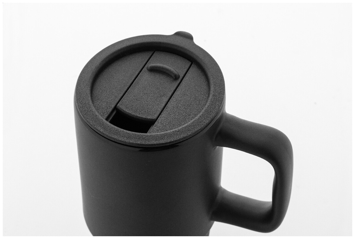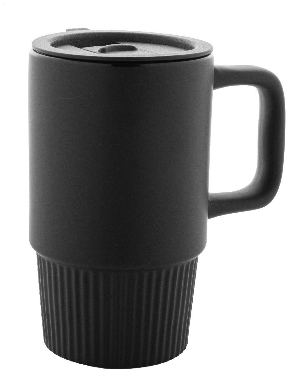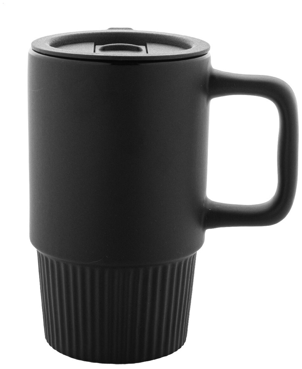 Vysoce kvalitní keramický cestovní hrnek s matným vnějším povrchem a plastovým víčkem z polypropylenu. 420 ml.