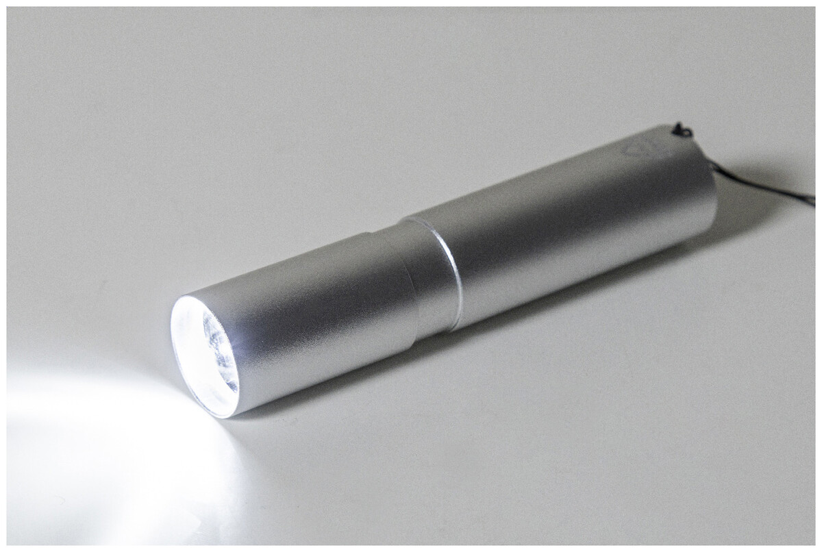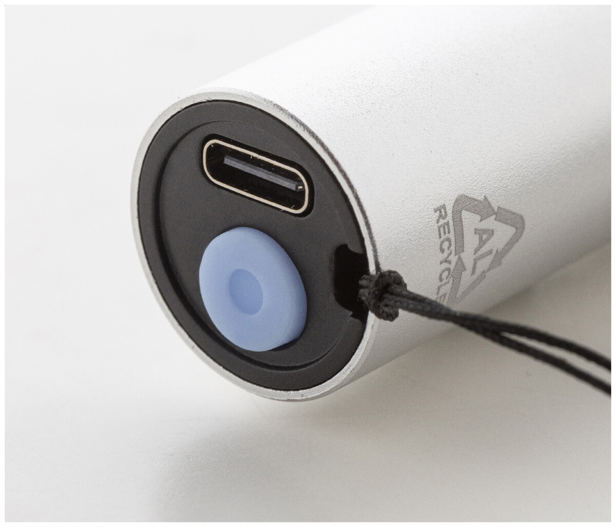 Baterka z recyklovaného hliníku s vestavěnou dobíjecí baterií USB (400 mAh) a popruhem na nošení. S vysoce výkonným COB světlem s možností zoomu a 3 světelnými režimy. Včetně nabíjecího kabelu USB.