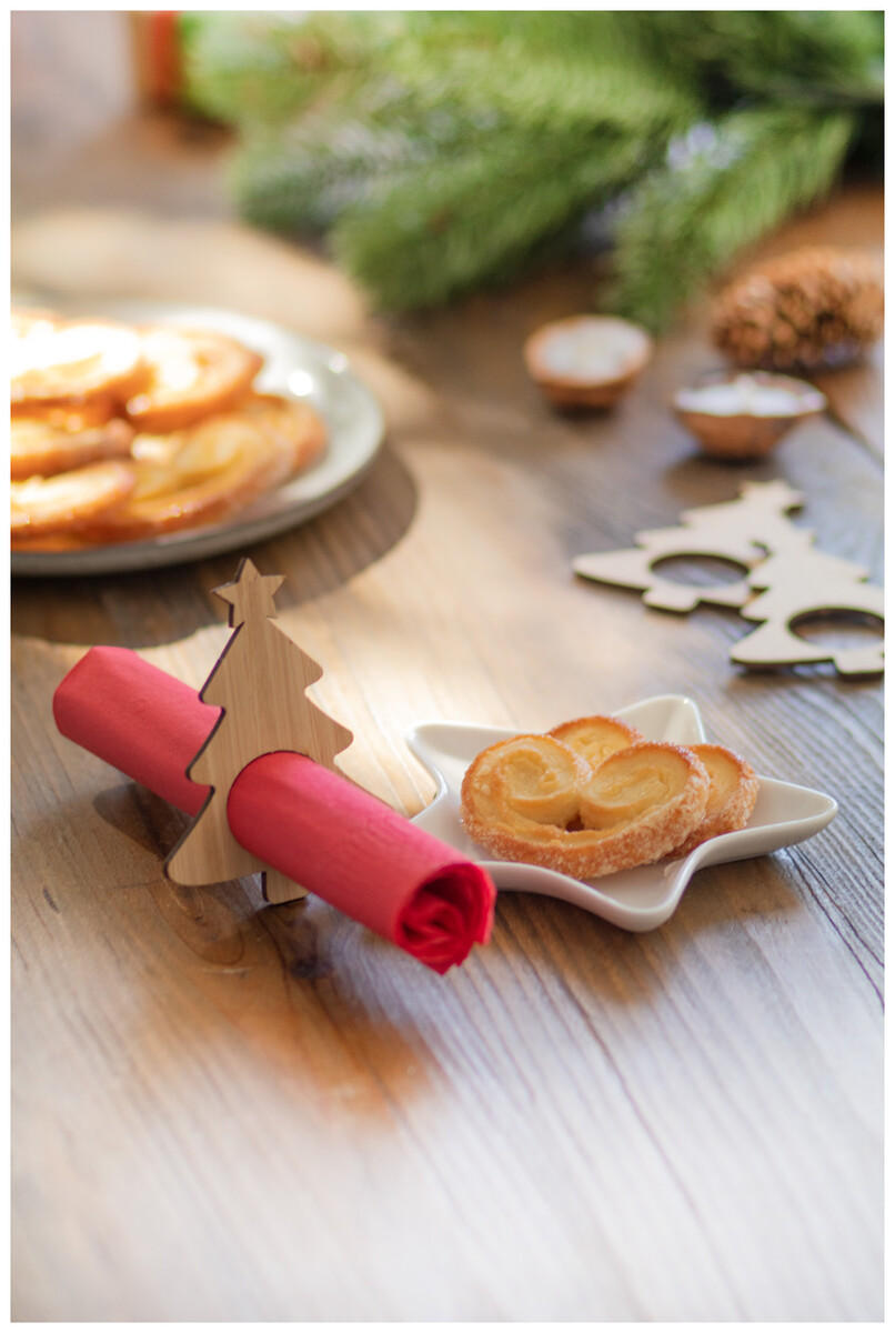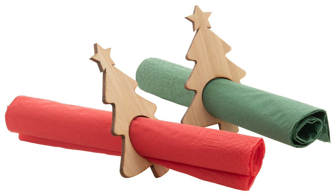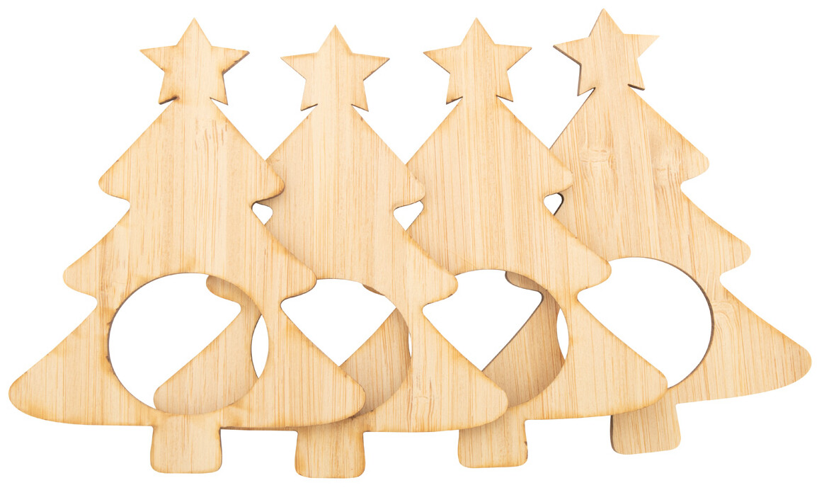 Sada 4 ks kroužků na ubrousky ve tvaru vánočního stromku z bambusové překližky.