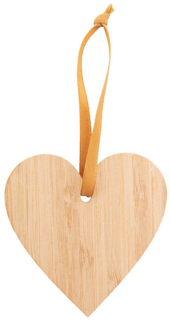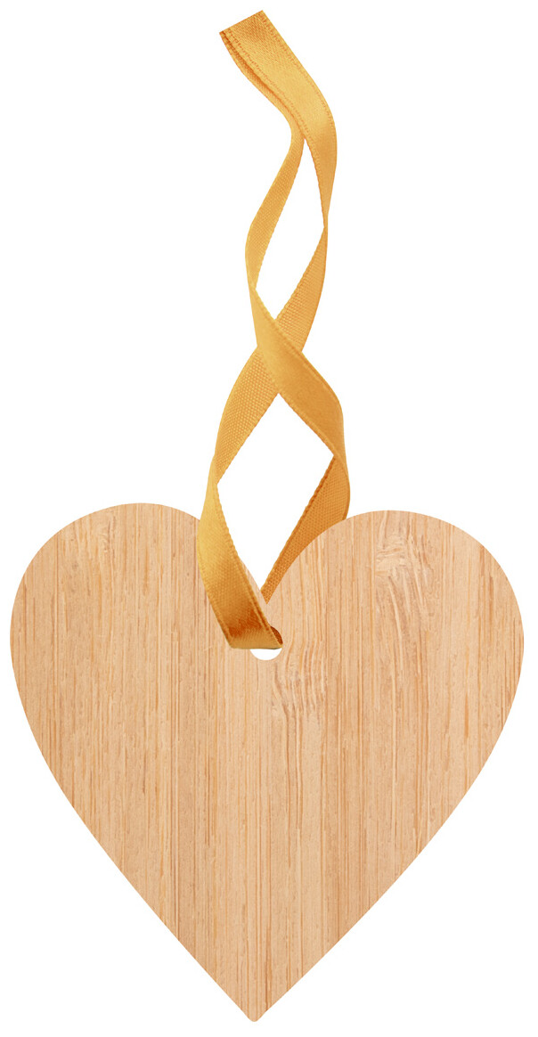 Vánoční ozdoba z bambusové překližky se zlatou stuhou. Dodáváno s oddělenou stuhou.