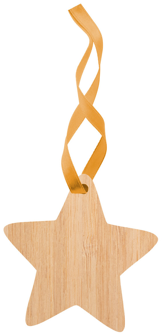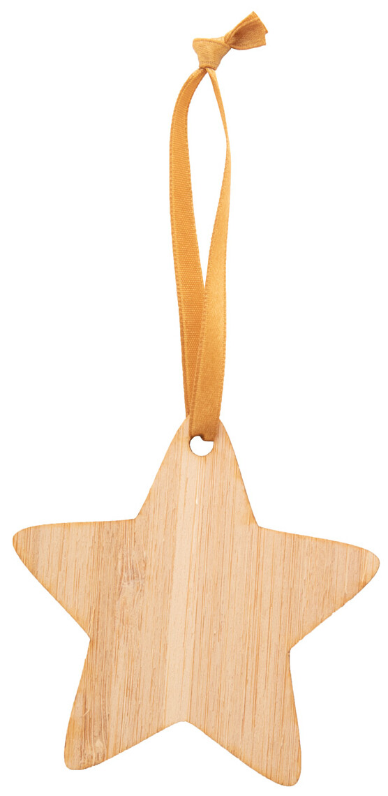 Vánoční ozdoba z bambusové překližky se zlatou stuhou. Dodáváno s oddělenou stuhou.