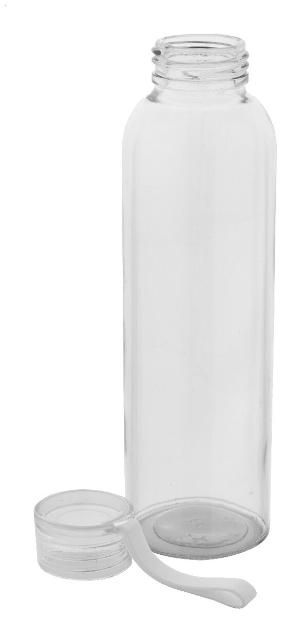 Láhev z recyklovaného skla s barevně odpovídajícím PP víčkem a silikonovým popruhem, 500 ml. Nevhodné pro sycené nápoje.