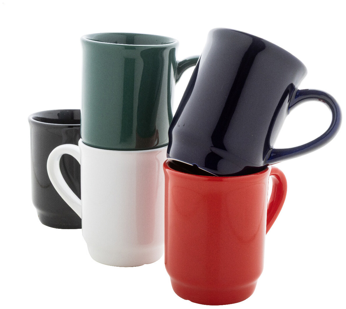 Stohovatelný keramický hrnek s barevným lesklým povrchem, 220 ml. V krabičce z kraftového papíru. Ideální pro servírování svařeného vína na akcích nebo trzích.