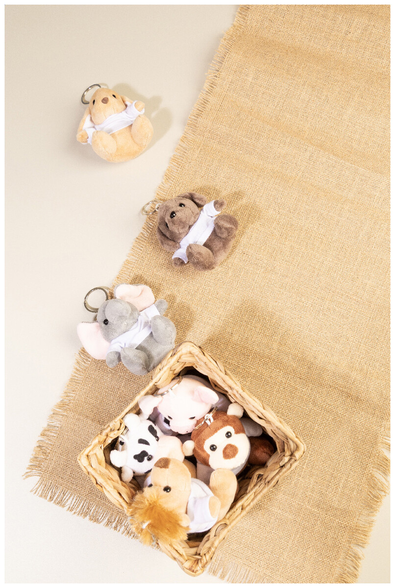 Plyšový přívěsek na klíče se slonem s tričkem na potisk.