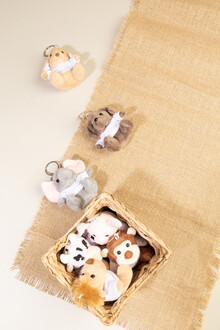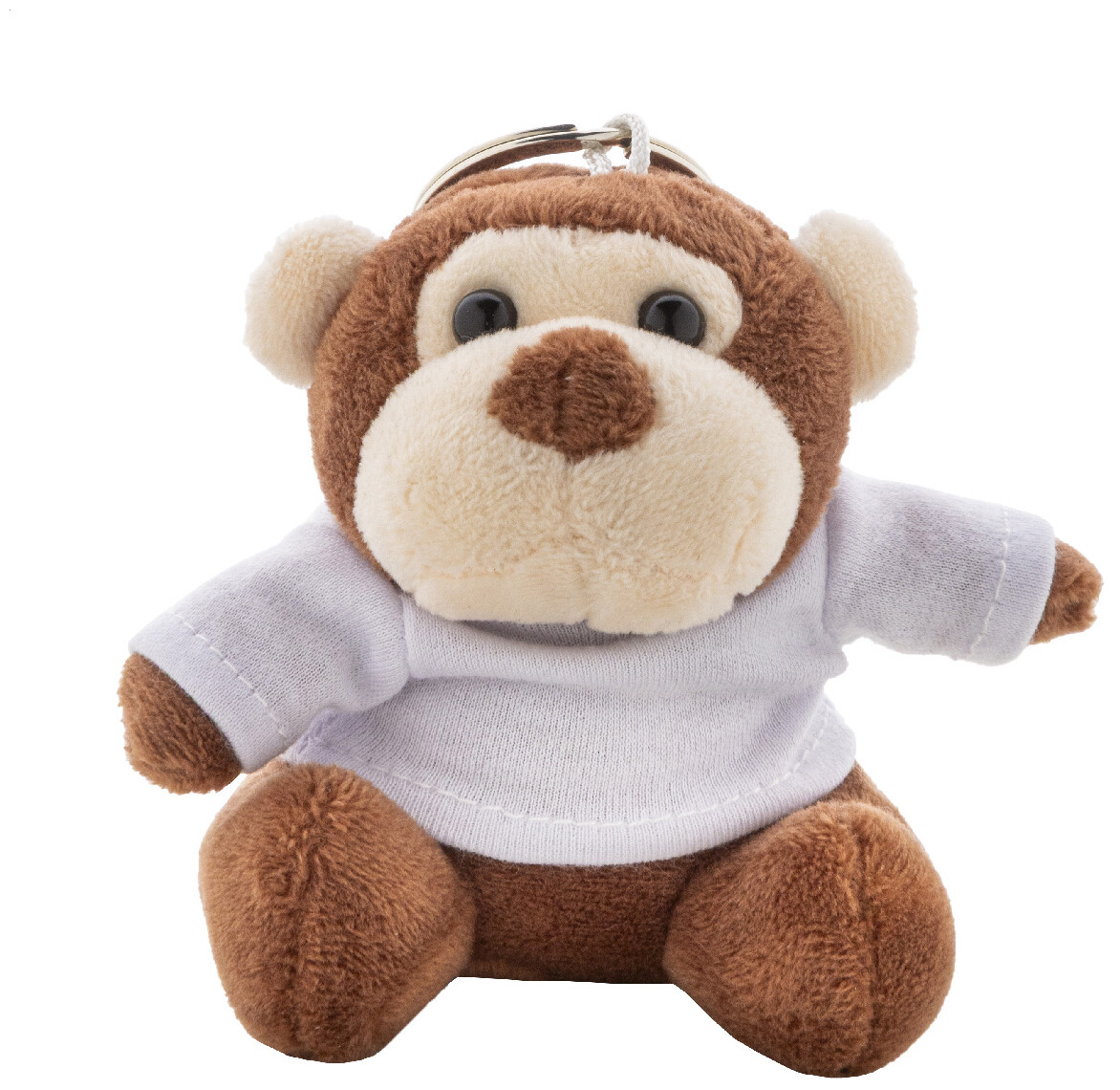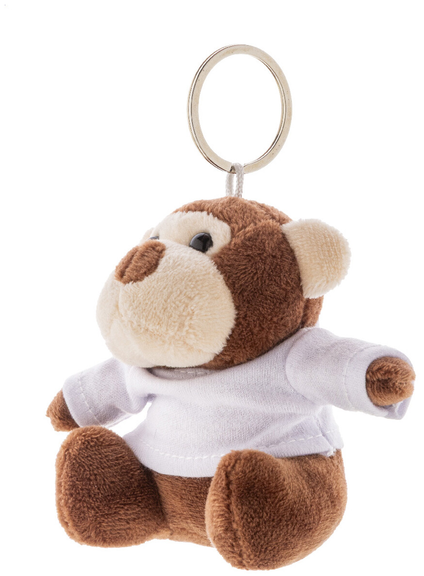 Plyšový přívěsek na klíče s opičkou s tričkem na potisk.