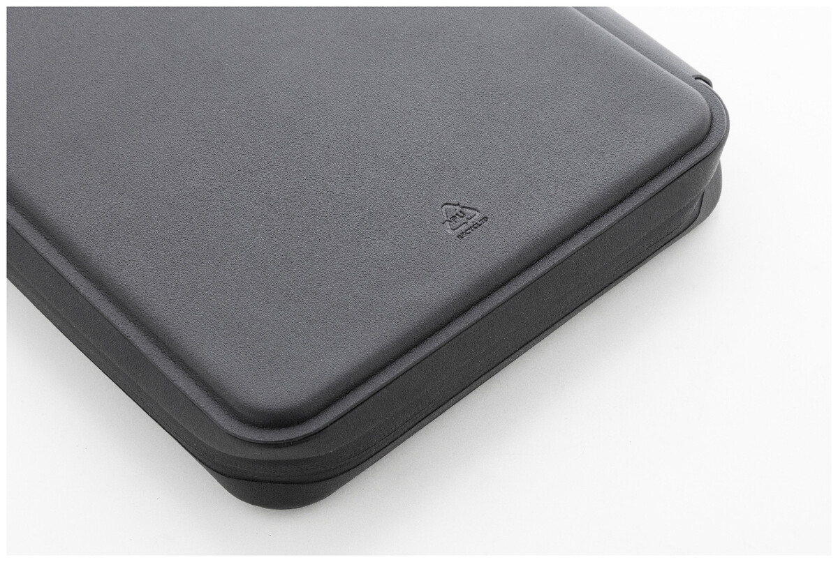 Luxusní složka na dokumenty A5 na zip z recyklované umělé kůže s 64 linkovanými listy a blokem z recyklovaného papíru. S několika vnitřními kapsami na karty a dokumenty.