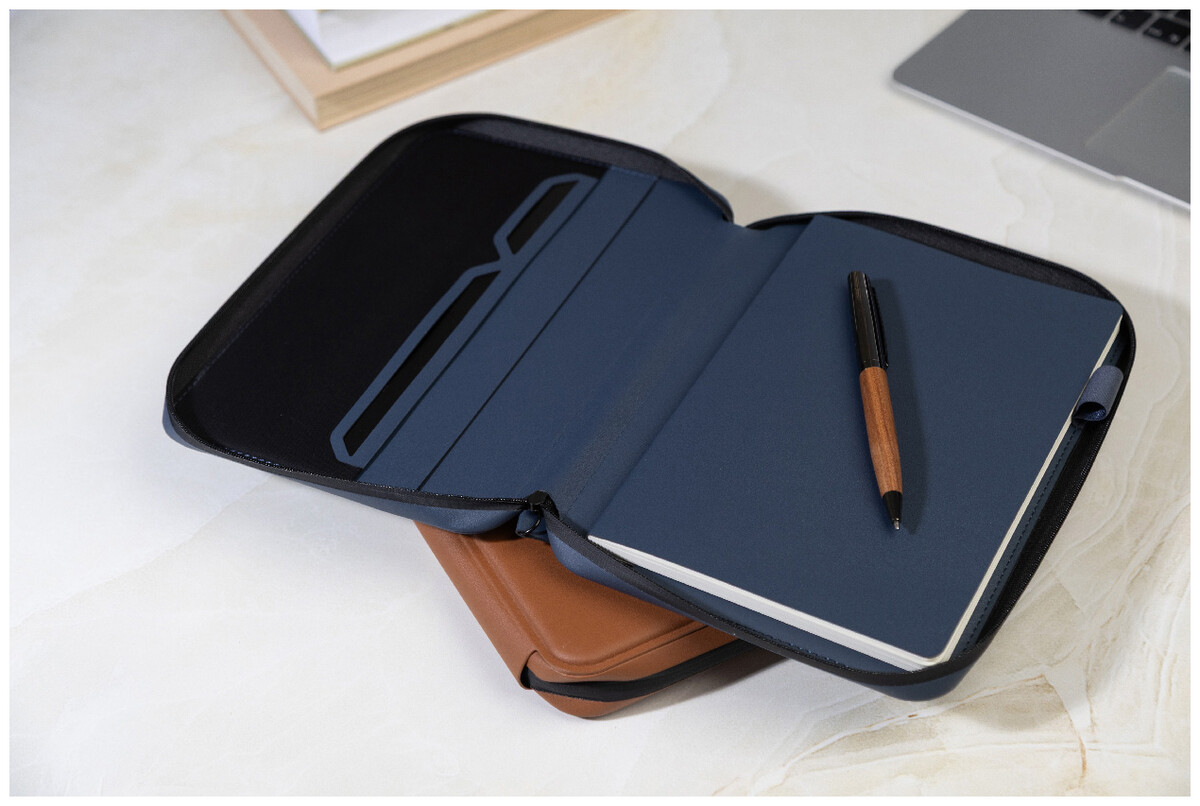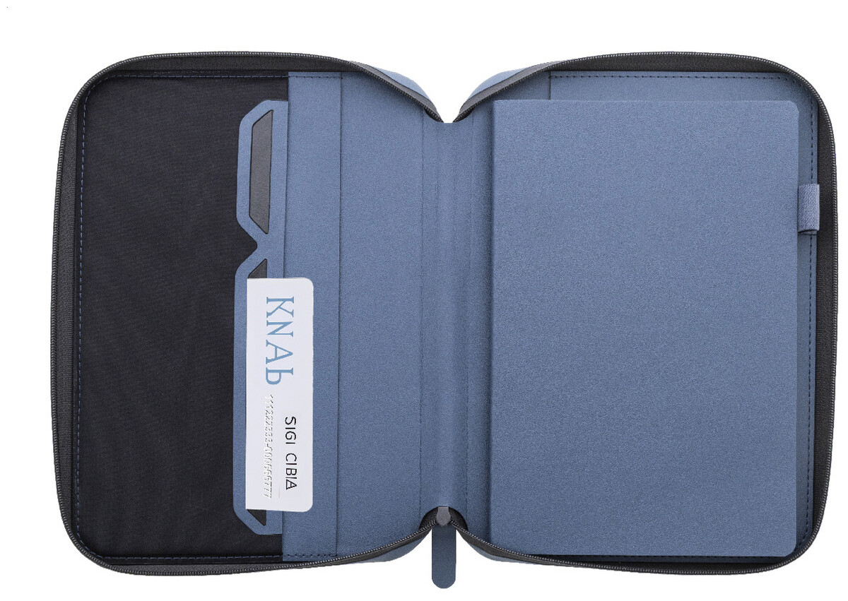 Luxusní složka na dokumenty A5 na zip z recyklované umělé kůže s 64 linkovanými listy a blokem z recyklovaného papíru. S několika vnitřními kapsami na karty a dokumenty.