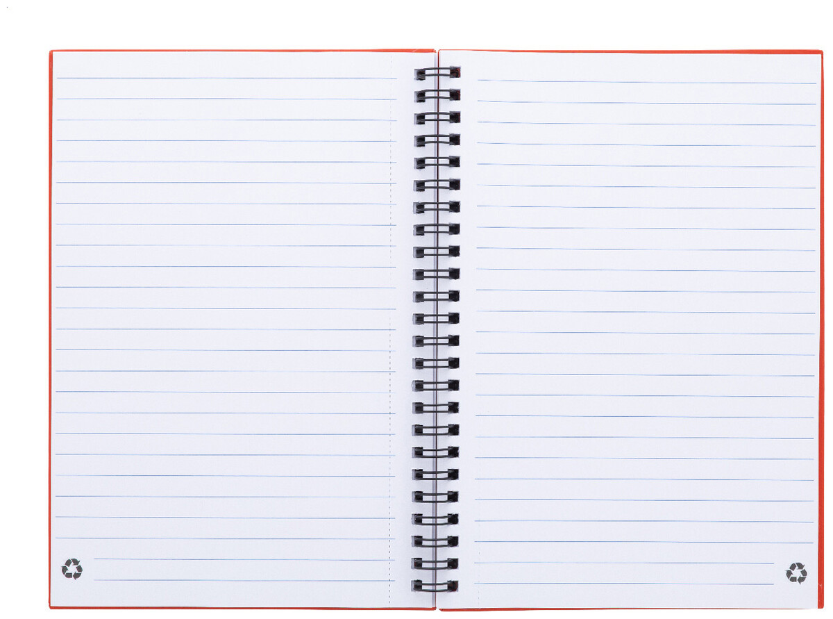 Spirálový blok A5 s 80 linkovanými listy z recyklovaného papíru.