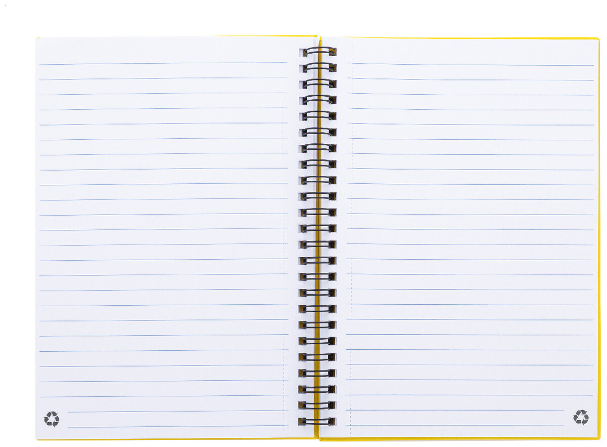 Spirálový blok A5 s 80 linkovanými listy z recyklovaného papíru.