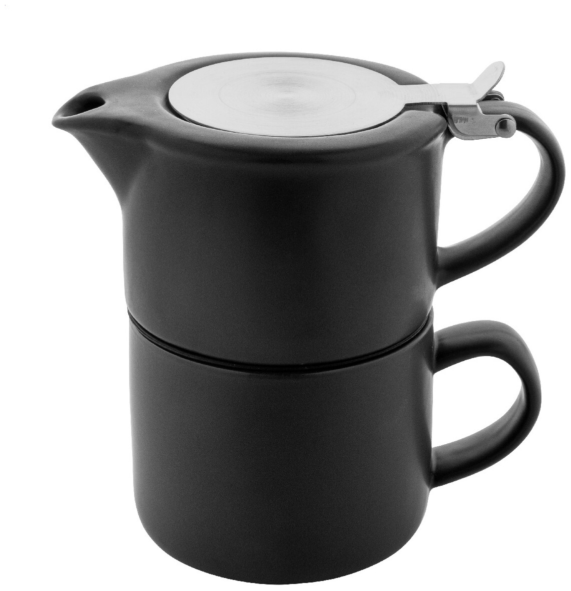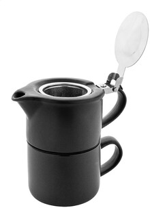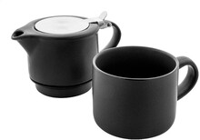 Vysoce kvalitní keramická čajová sada s matným povrchem. Včetně konvice na čaj (430 ml) s víčkem z nerezové oceli a sítkem na čaj, navržená pro úhledné stohování na odpovídající hrnek (400 ml). V krabičce z kraftového papíru.