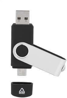Otočný USB flash disk OTG v pouzdře z recyklovaného ABS a kovu s pamětí 8/16/32 GB. S připojeními USB a USB-C. USB 2.0.
