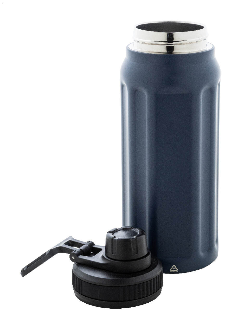 Dvoustěnná termoska z recyklované nerezové oceli s vertikálními drážkami. S víčkem z polypropylenu a s integrovaným držadlem. 540 ml.