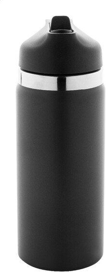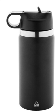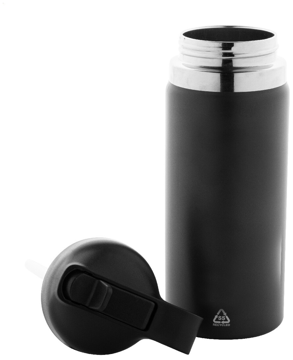 Dvoustěnná vakuová láhev z recyklované nerezové oceli s odklápěcím víčkem z PP, rukojetí a integrovaným brčkem. 500 ml.