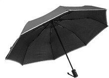 Plně automatický (otevírání/zavírání), větruodolný skládací deštník s 8 panely, stříbrné lemování. S kovovým rámem, žebry ze skelných vláken, pogumovanou rukojetí s popruhem na ruku a přepravním pouzdrem. Ponž 190T RPET. S výrazným štítkem RPET. Ve značkovém pevném pouzdře na zip. Výrobek značky André Philippe.