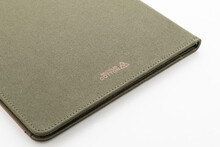 Složka na dokumenty A4 z recyklovaného plátna a recyklované umělé kůže s několika předními a vnitřními kapsami. S blokem na 20 linkovaných listů z recyklovaného papíru. 70 % recyklované bavlny a 30 % RPET polyesteru.