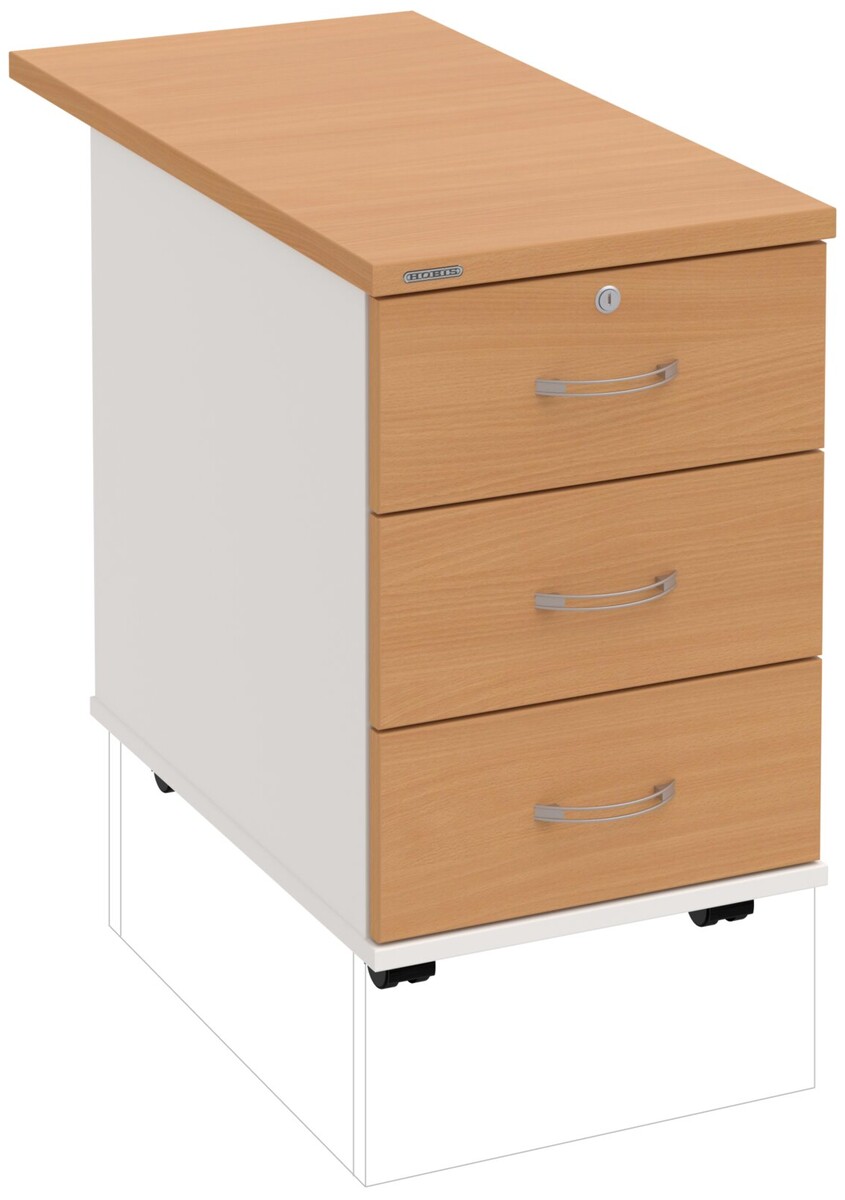 Kancelářské kontejnery nabízíme ve 4 modelech, které se liší uspořádáním zásuvek. Využití naleznou,spolu s ostatními řadami kancelářského nábytku HOBIS, ve všech kancelářských prostorech. Rozměry jsou 40 cm šířka, 60 cm hloubka a 60 cm výška. Protože jsme si vědomi nároků na zajištění bezpečnosti obsahu kontejnerů, osadili jsme většinu z nich zámky s centrálním zamykáním. Stačí zamknout jednu zásuvku a současně tak uzamknete i všechny ostatní. Díky integrovanému systému STOPCONTROL v uzamykacím mechanismu se nemusíte bát převrhnutí kontejneru nebo případného skřípnutí rukou. Systém zaručí, že při otevření jedné zásuvky se ostatní zásuvky automaticky zablokují. Stoly můžete vybírat z nabídky kancelářského nábytku HOBIS.