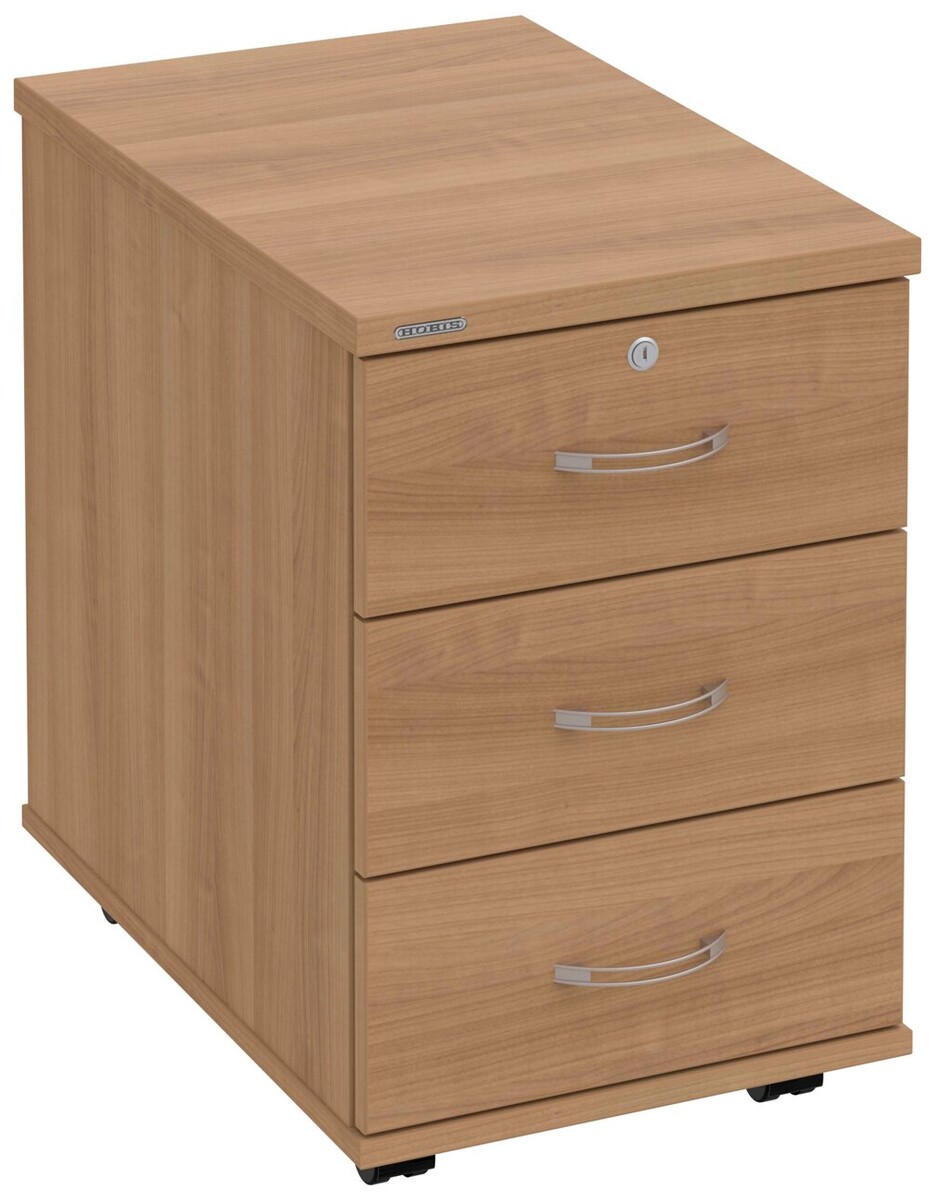 Kancelářské kontejnery nabízíme ve 4 modelech, které se liší uspořádáním zásuvek. Využití naleznou,spolu s ostatními řadami kancelářského nábytku HOBIS, ve všech kancelářských prostorech. Rozměry jsou 40 cm šířka, 60 cm hloubka a 60 cm výška. Protože jsme si vědomi nároků na zajištění bezpečnosti obsahu kontejnerů, osadili jsme většinu z nich zámky s centrálním zamykáním. Stačí zamknout jednu zásuvku a současně tak uzamknete i všechny ostatní. Díky integrovanému systému STOPCONTROL v uzamykacím mechanismu se nemusíte bát převrhnutí kontejneru nebo případného skřípnutí rukou. Systém zaručí, že při otevření jedné zásuvky se ostatní zásuvky automaticky zablokují. Stoly můžete vybírat z nabídky kancelářského nábytku HOBIS.