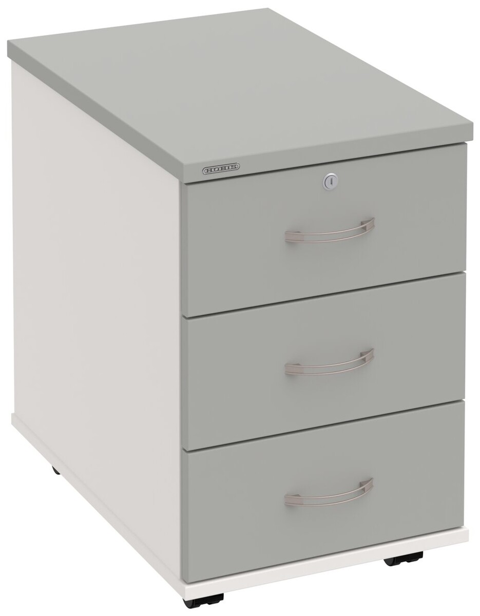 Kancelářské kontejnery nabízíme ve 4 modelech, které se liší uspořádáním zásuvek. Využití naleznou,spolu s ostatními řadami kancelářského nábytku HOBIS, ve všech kancelářských prostorech. Rozměry jsou 40 cm šířka, 60 cm hloubka a 60 cm výška. Protože jsme si vědomi nároků na zajištění bezpečnosti obsahu kontejnerů, osadili jsme většinu z nich zámky s centrálním zamykáním. Stačí zamknout jednu zásuvku a současně tak uzamknete i všechny ostatní. Díky integrovanému systému STOPCONTROL v uzamykacím mechanismu se nemusíte bát převrhnutí kontejneru nebo případného skřípnutí rukou. Systém zaručí, že při otevření jedné zásuvky se ostatní zásuvky automaticky zablokují. Stoly můžete vybírat z nabídky kancelářského nábytku HOBIS.