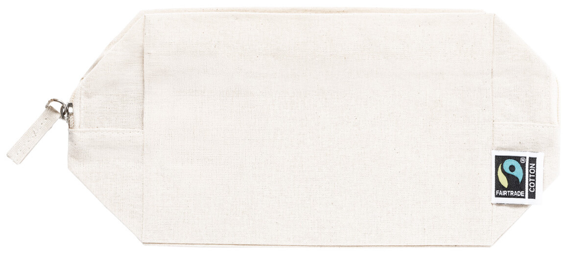 Fairtrade bavlněná kosmetická taštička na zip s výraznou Fairtrade etiketou. 100% Fairtrade bavlna, 180 g/m2.