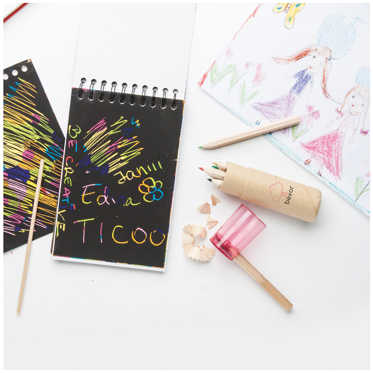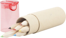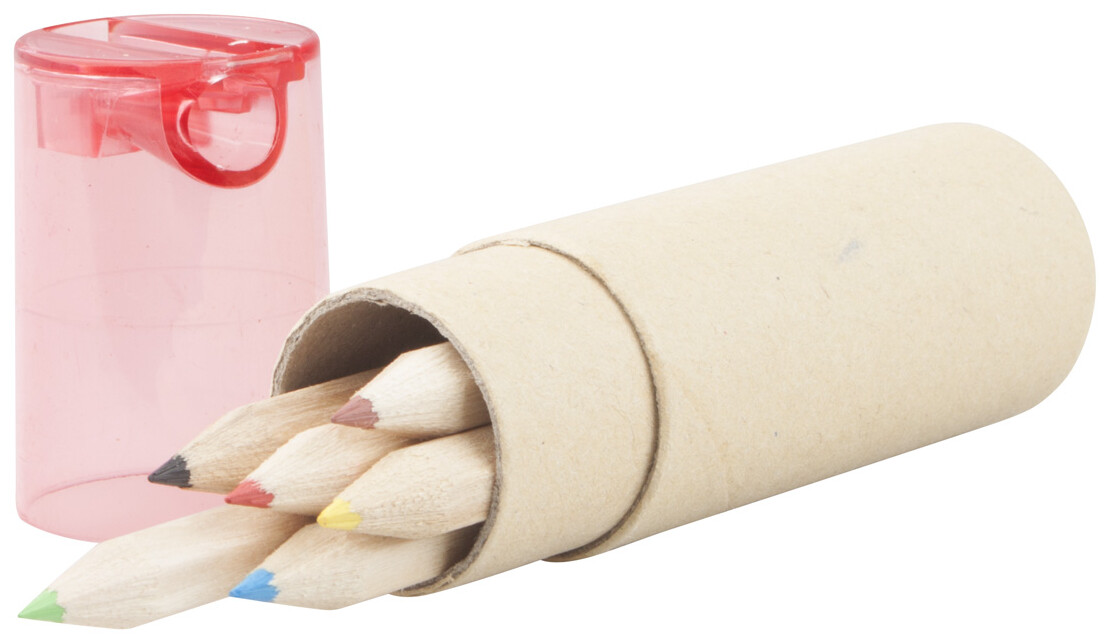 Sada 6ks barevných tužek s ořezávátkem v papírové krabičce.