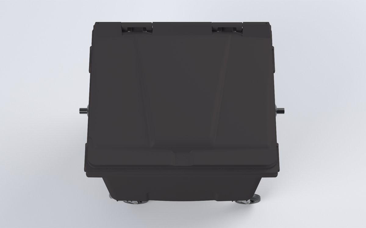 Kontejner s horním výsypem o objemu 1100 litrů je opatřen plochým víkem.