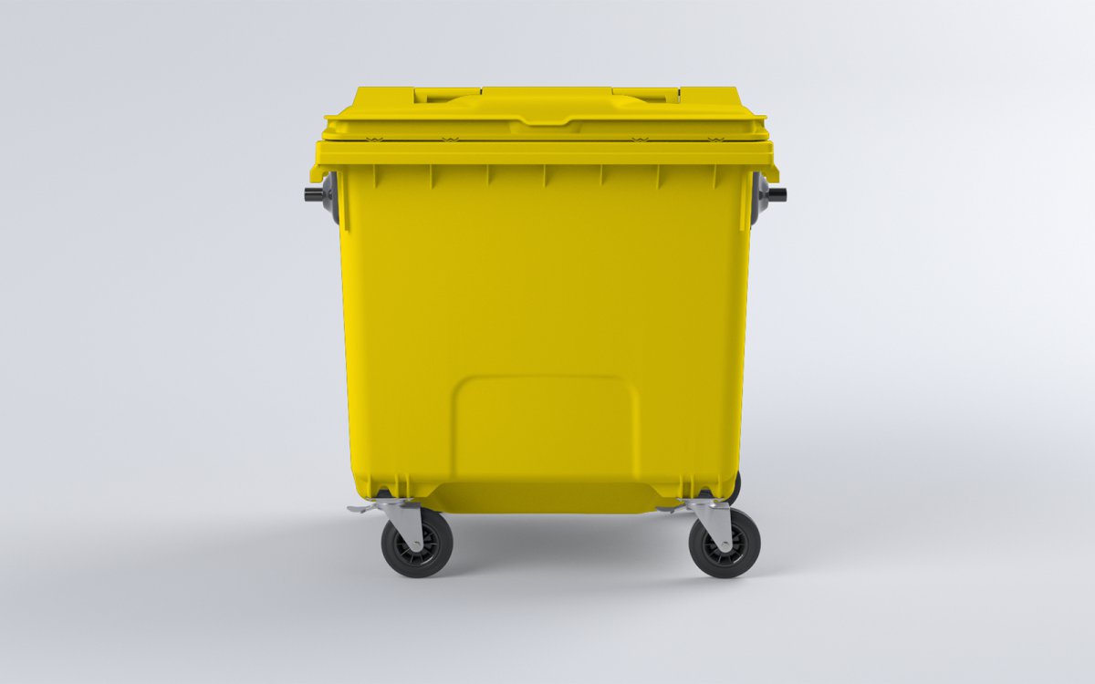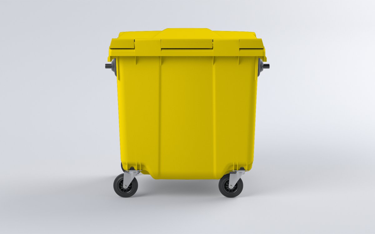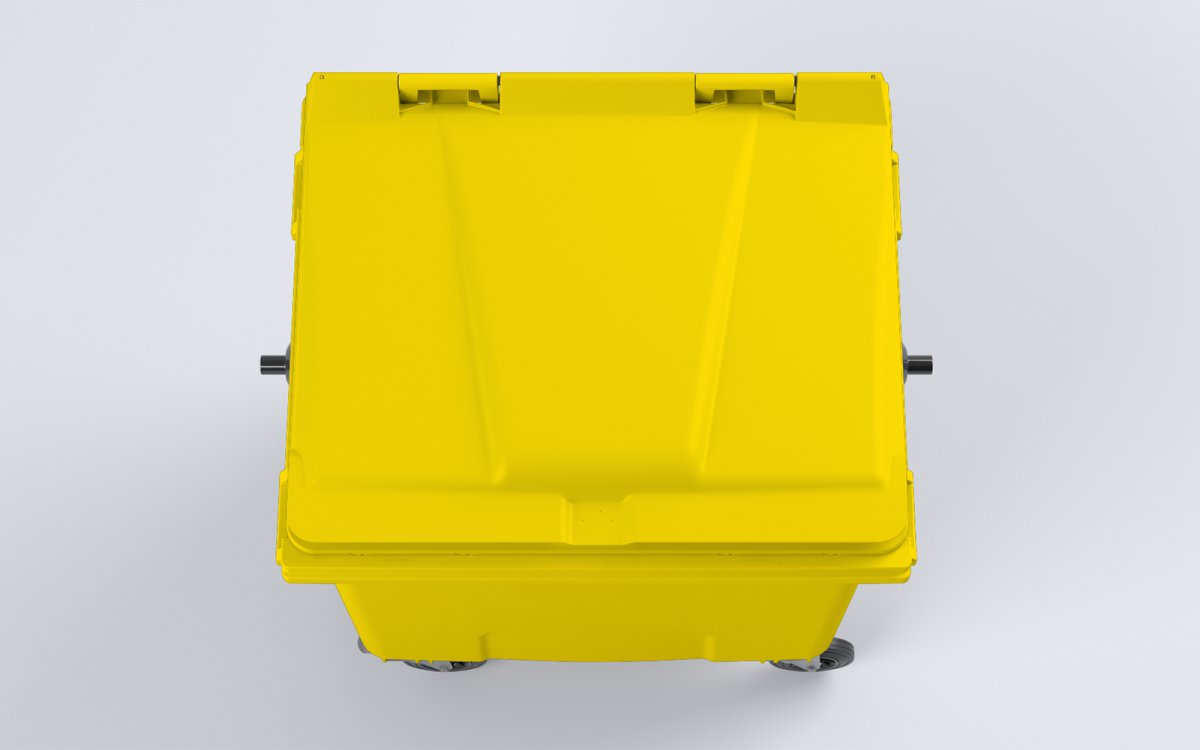 Kontejner na tříděný odpad s plochým víkem 1100 l, plastový, žlutý
