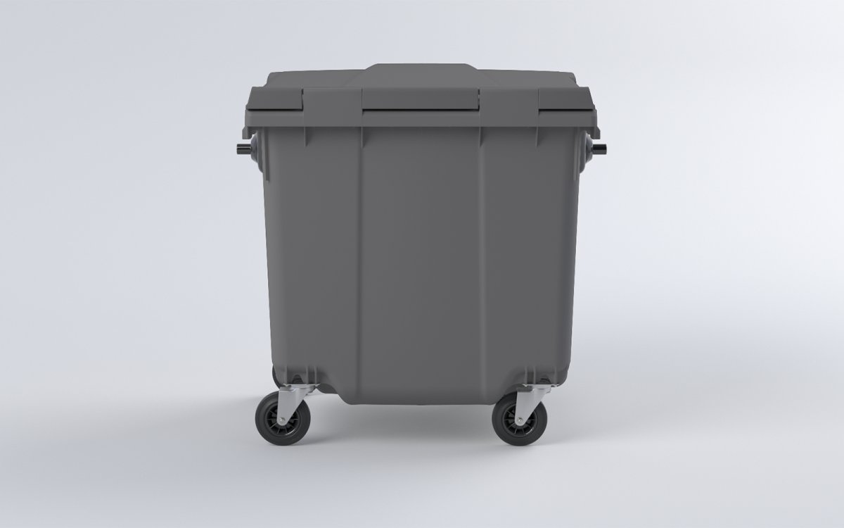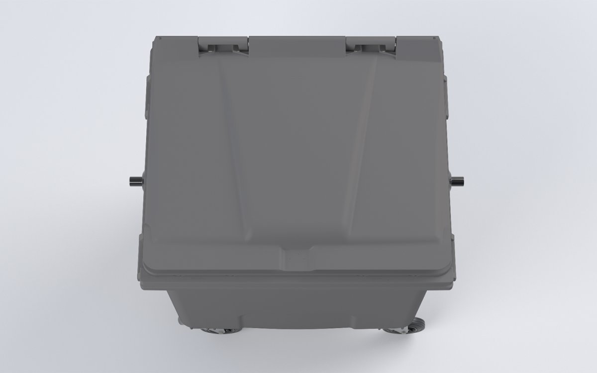 Kontejner s horním výsypem o objemu 1100 litrů je opatřen plochým víkem.