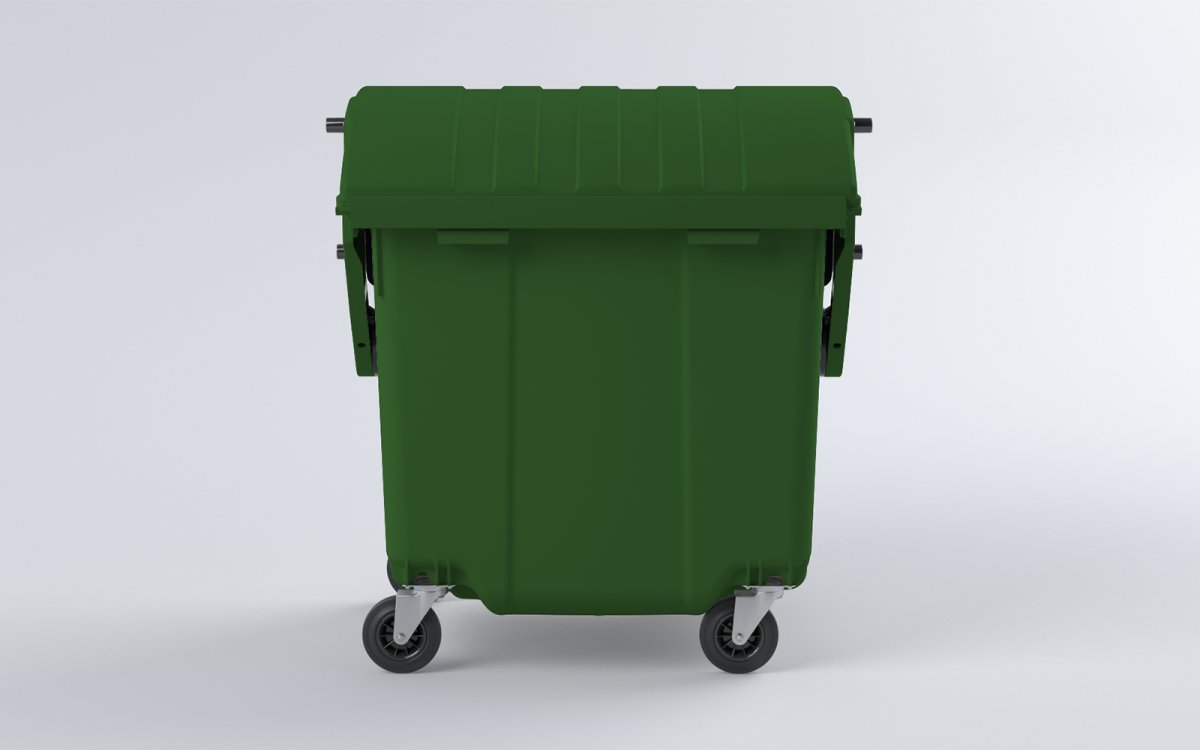 Kontejner na tříděný odpad s kulatým víkem 1100 l, plastový, zelený
