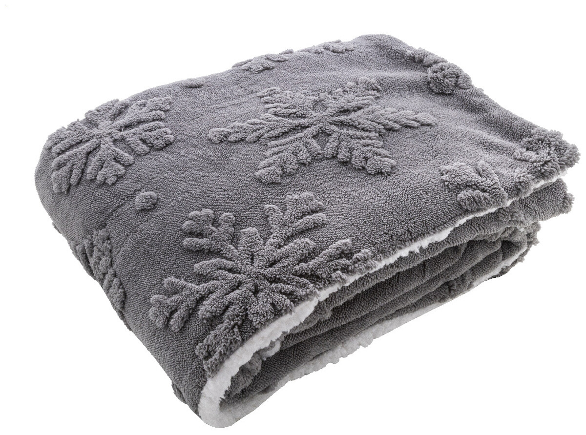 Luxusní dvouvrstvá vánoční deka z RPET s žakárovým vzorem sněhových vloček. S korálovým fleecovým materiálem RPET 260 g/m2 a oboustrannou podšívkou z RPET sherpa fleecu 210 g/m2. Zabaleno do stuhy a tisknutelného papírového kartonu.