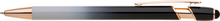 Elegantní kuličkové pero s kovovým tělem v moderním černo-šedivém přechodu a detaily z růžového zlata. Na konci má dotykovou část pro ovládání mobilu či tabletu. Výsledný efekt laserového značení je světle stříbrný až bílý. Náplň X-20 modře píšící.