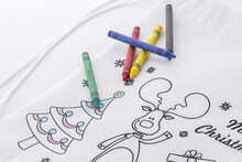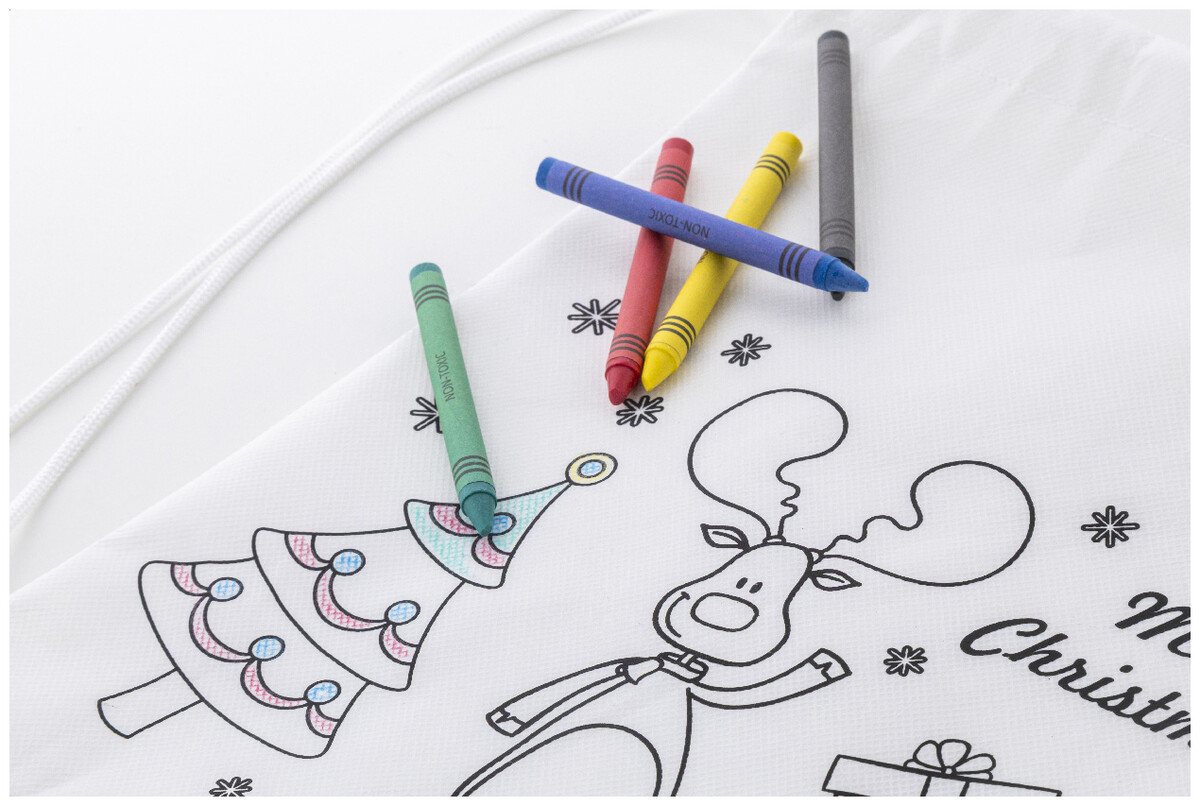 Vánoční vak na vybarvování se stahovací šňůrkou z netkané RPET tkaniny s 5 voskovkami.