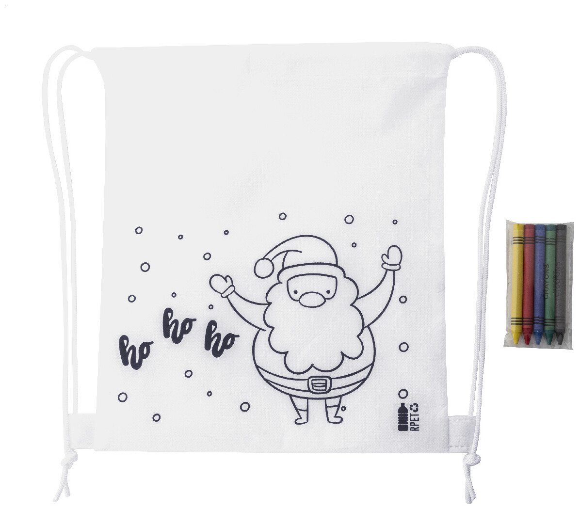 Vánoční vak na vybarvování se stahovací šňůrkou z netkané RPET tkaniny s 5 voskovkami.