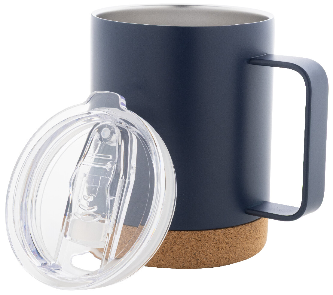 Dvoustěnný nerezový termohrnek s víčkem na pití a dnem z přírodního korku, 330 ml. V kraftové papírové krabici.