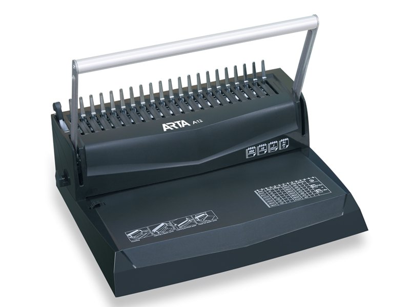 Jednoduchý kancelářský stroj pro vázání dokumentů do plastových hřbetů, vhodný