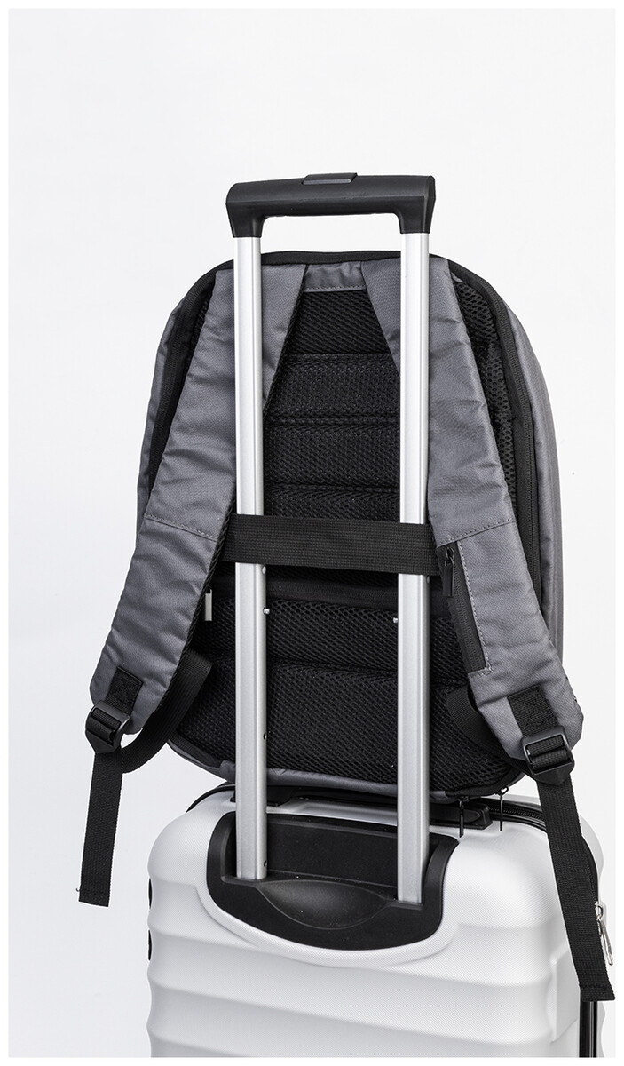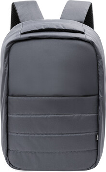 Batoh z RPET s ochranou proti krádeži s přihrádkou na zip, polstrovanou přihrádkou na notebook (15") a tablet (12"), popruhem na kufr, polstrovanými zády a ramenními popruhy. Se skrytou kapsou proti krádeži. Polyester 300D RPET. S výrazným štítkem RPET.
