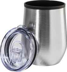 Dvoustěnný termo hrnek z recyklované nerezové oceli s vnitřní stranou z PP a víčkem z PS. 350 ml.