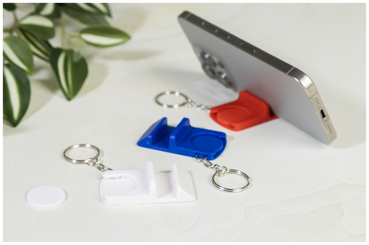 Přívěsek klíče se žetonem do košíku z recyklovaného ABS materiálu s držákem na mobilní telefon. Velikost mince: ø23×2 mm.