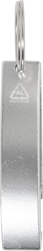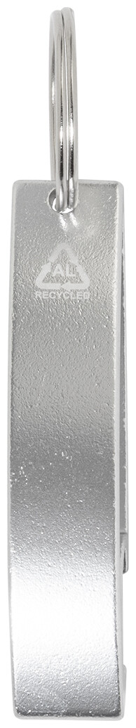 Otvírák na lahve z recyklovaného hliníku s kovovým kroužkem na klíče.